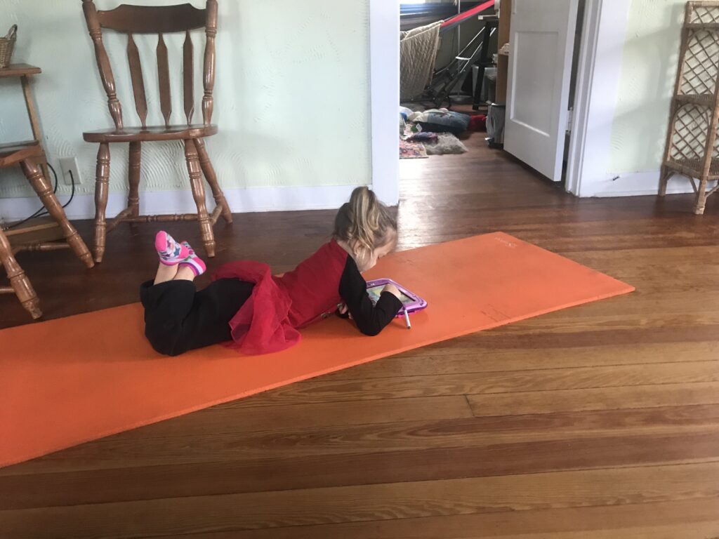 Angel and I finished off the 2nd smoothie. Then I went back to scraping paint while Angel played educational games on her leap pad.