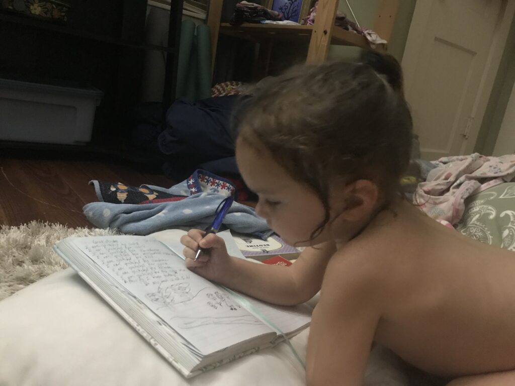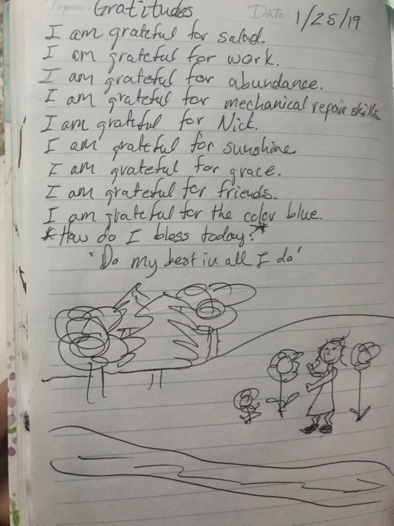 I finished my dinner and cleaned up the kitchen. Angel and I took a shower, wrote our gratitudes, read stories gave good night kisses and went to bed.