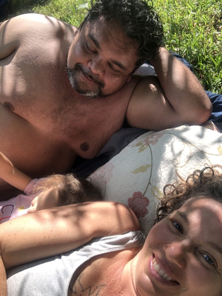 I was super hungry. I ate 2 perfectly ripe mangos and 32 oz banana, strawberry, spinach smoothie. I was full and happy. Fred and I unloaded the vehicles. Then I set up a blanket and pillows under the peach trees. We laid there for a few hours talking, watching the sky, writing, reading, playing with Angel and doing nothing. It was blissful.