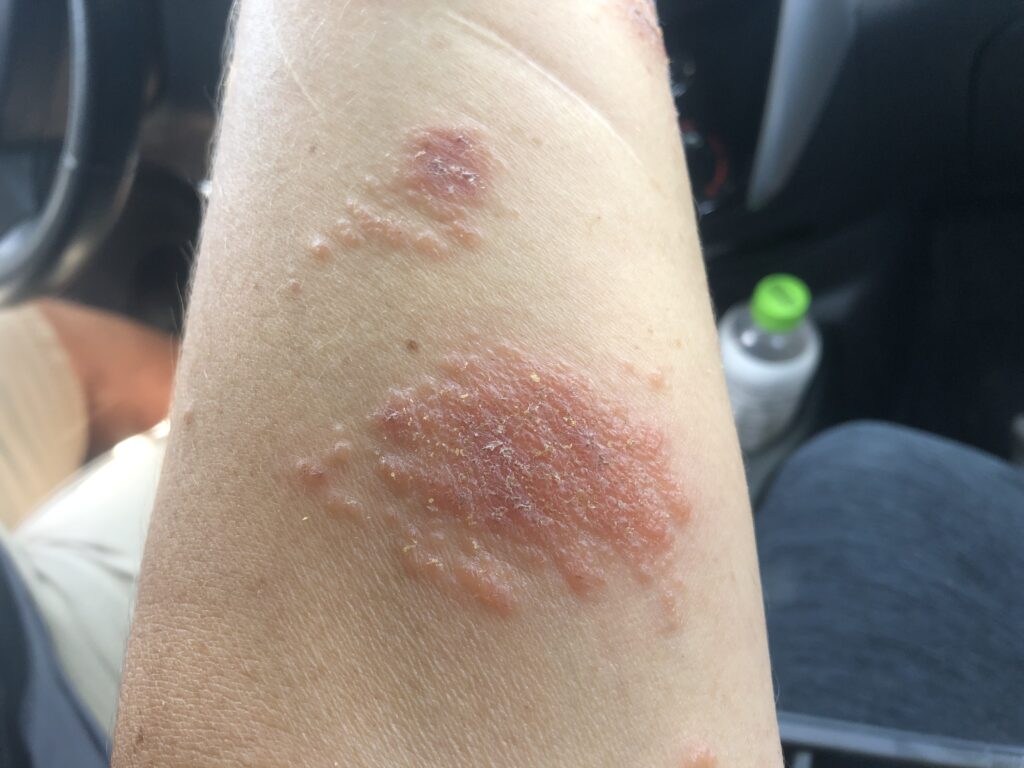 Last week on Thursday morning I notice a very itchy rash breaking out on my wrist. It became worse as the day progressed and quickly spread to both arms and legs. I spent the next few days trying to figure out what in the heck it was. I’m not usually prone to getting rashes. I kept thinking maybe it was scabies from what I had read on the internet but didn’t know how in the world would I have gotten it. I got out the essential oils and aloe vera and figured I would treat the rash for everything. The spreading slowed way down but it was slowly getting worse. By the time Tuesday came around I was a hot mess. I wasn’t sleeping due to the itching and I didn’t want to pay a fortune out of pocket to see a doctor without insurance. I showed up to work in tears. My client sent me home with orders to see a doctor. Instead I went home and lathered myself up with aloe vera gel and essential oils and took a nap. When I woke up from the nap my boyfriend Fred called me. I told him in was worse than ever. He said he was coming to get me and would take me to a minute clinic.