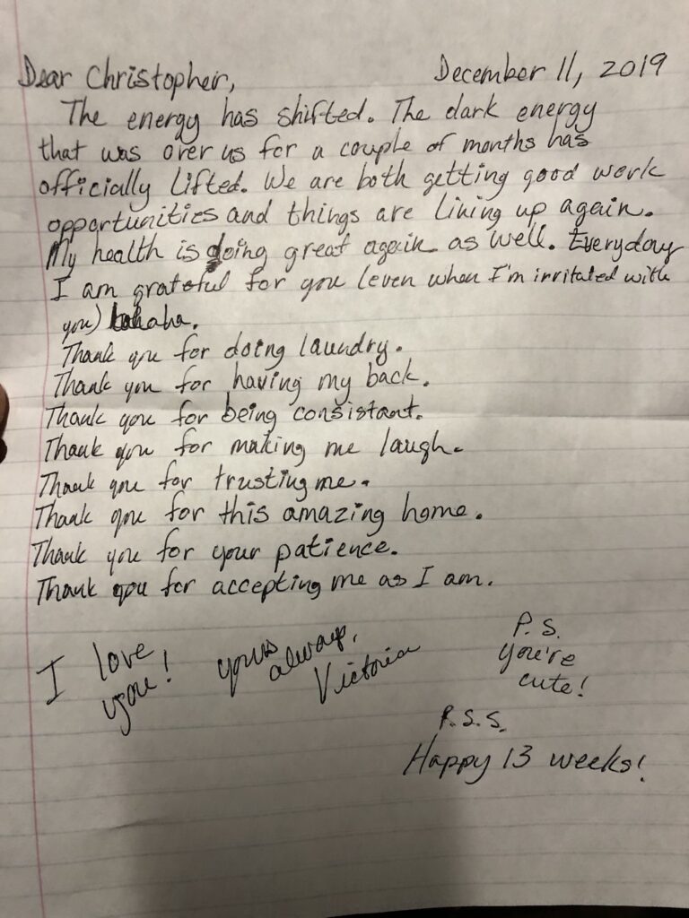 The energy has shifted. The dark energy that was over us for a couple of months has officially lifted. We are both getting good work opportunities and things are lining up again. My health is doing great again as well. Everyday I am grateful for you (even when I’m irritated with you) hahaha.