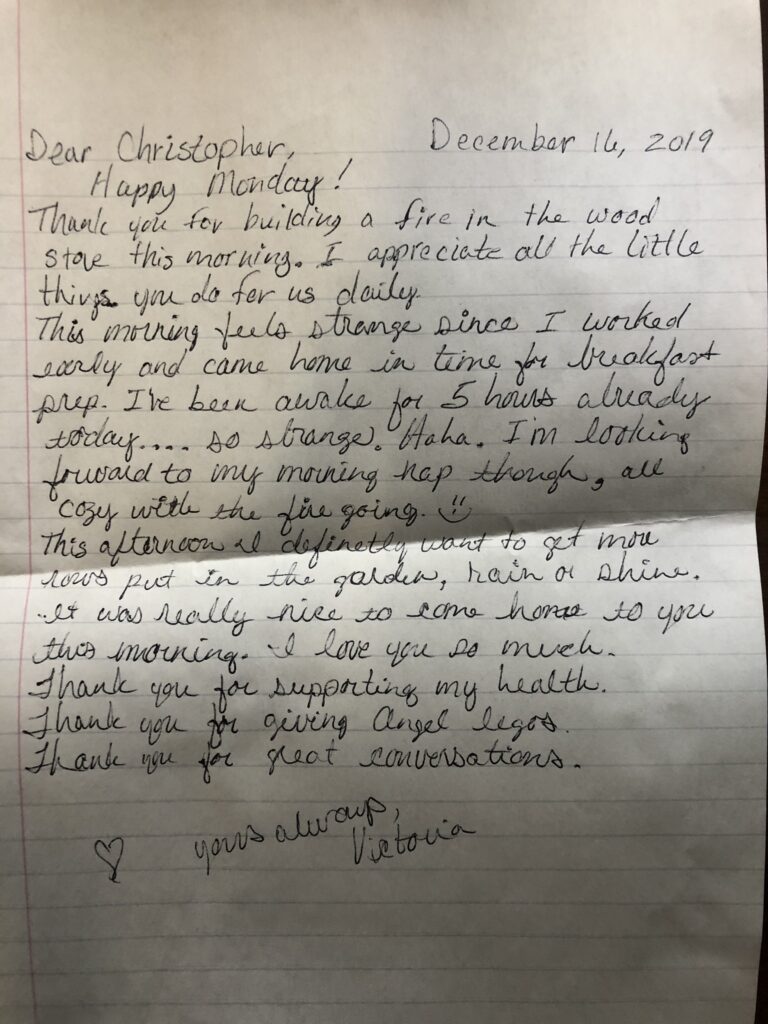 Thank you for building a fire in the wood stove this . I appreciate all the little things you do for us daily.
